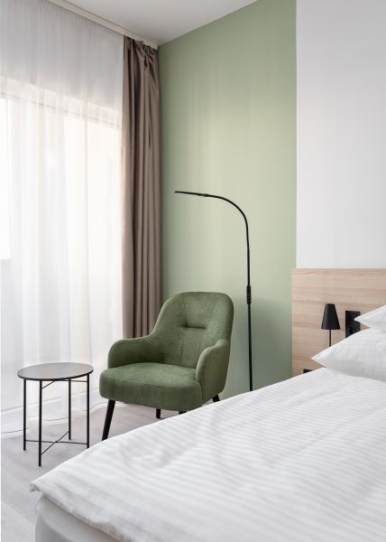 Pokoj bez balkonu, který se nachází ve třetím patře. Mají výhled na vnitřní terasu nebo garáž a jsou vybaveny koupelnou se sprchou. Podlahová plocha 17 m2 Vybavení: klimatizace, LED TV, telefon, trezor, minibar, koupelna se sprchou, wifiVelikost lůžka: 80 x 200 cm. Dvoulůžkové pokoje s oddělenými postelemi, oddělené matrace