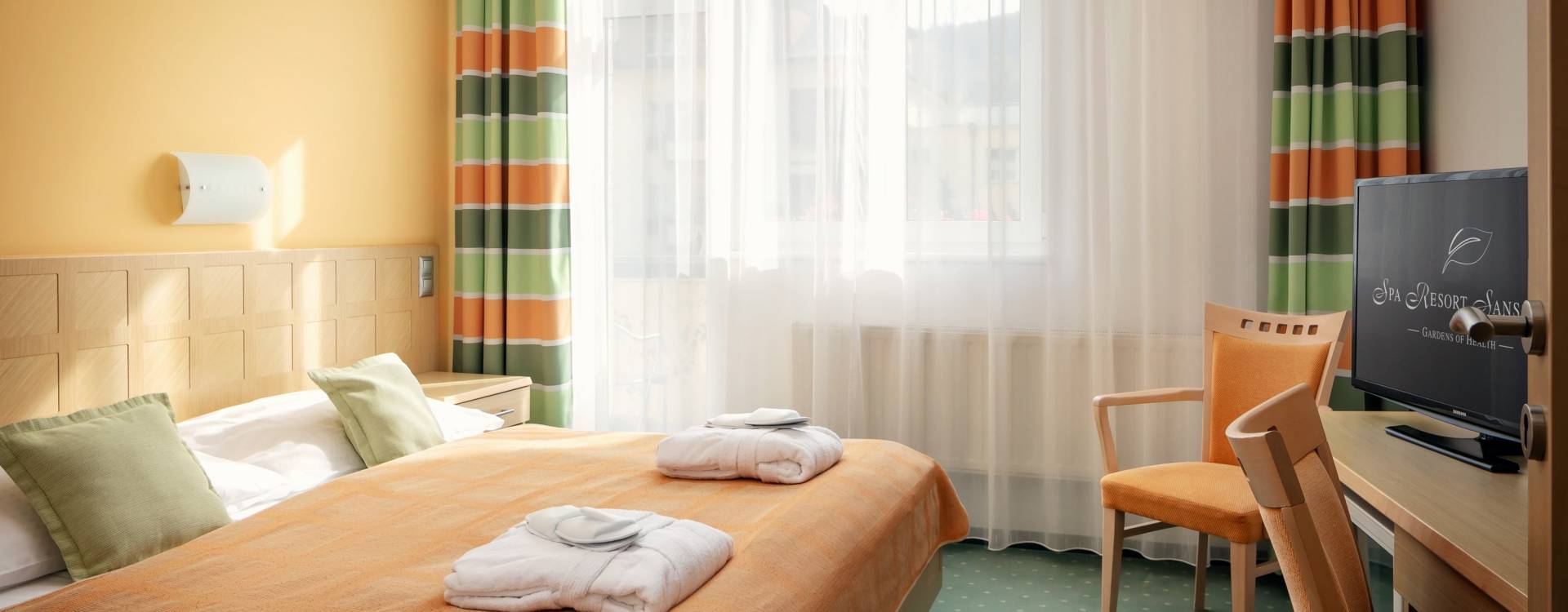 Mindestgröße 19 m2, ein Zimmer, Balkon - auf Anfrage, Badezimmer (Dusche oder Badewanne), Mahlzeiten im Restaurant Charleston oder Melody Neu renovierte Doppelzimmer im Spa Resort Sanssouci Karlovy Vary bieten den Gästen Vier-Sterne-Komfort zu einem erschwinglichen Preis. Das Zimmer ist modern eingerichtet und mit einem Telefon, einer Minibar und einem Safe ausgestattet. Sie können auch kostenlosen WLAN-Internetzugang nutzen. Die Badezimmer der Zimmer verfügen entweder über eine Badewanne oder eine Dusche, ein Waschbecken, eine Toilette, einen Haartrockner und einen Kosmetikspiegel. Grundlegende Toilettenartikel, Bademantel, Hoteltücher und Badetücher werden während Ihres Aufenthalts zur Verfügung gestellt. Einige Zimmer verfügen über einen Balkon, der bei der Buchung angefragt werden kann.